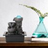 [Decorative Water Fountains Indoor]- Tabletop water fountain with quiet submersible pump to circulate the water and made gentle soothing sound of water for relaxing. The indoor fountain with coloured lights is suitable for any office, living room home decoration.(Size: 9.05*6.8*10.23 In)